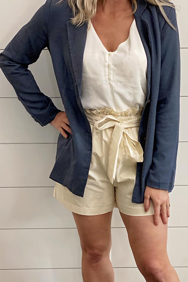 Woven - Single breast button closure - Notched lapels - Oversized fit. Blue.