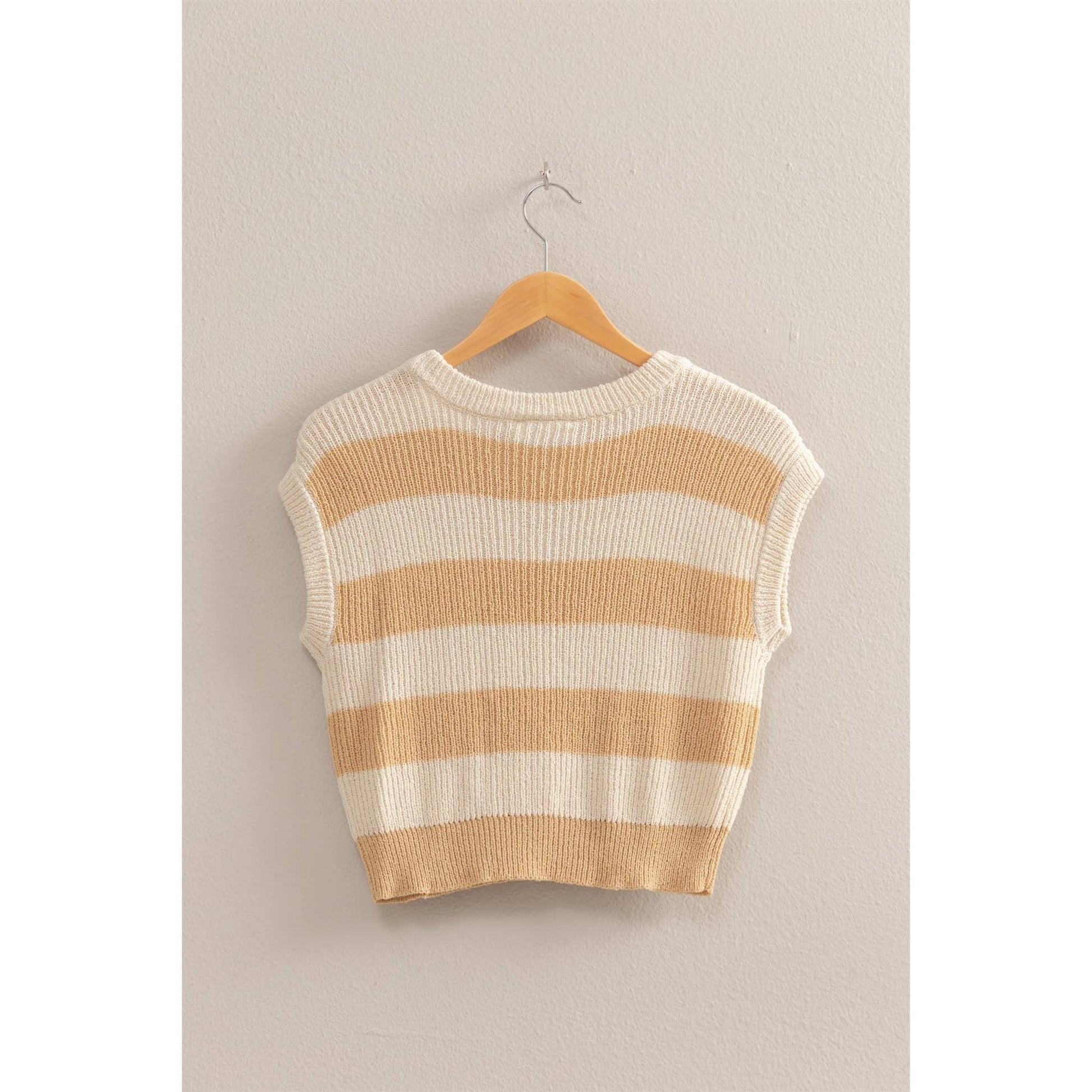 You Will Be Radiating A Fresh Style Wherever You Go In This Top. It Combines The Cozy Texture Of Ribbing With Thick Stripes, Shaping A Crew Neck And Cap Sleeves. The Figure Flattering Fit With An Adjustable Hem With Drawstring Finishes Off The Look. 55% Cotton 29% Acrylic 16% Nylon Model Is 5' 8" Tall, 32" Chest, 25" Waist, 35" Hips And Wearing A Size Small