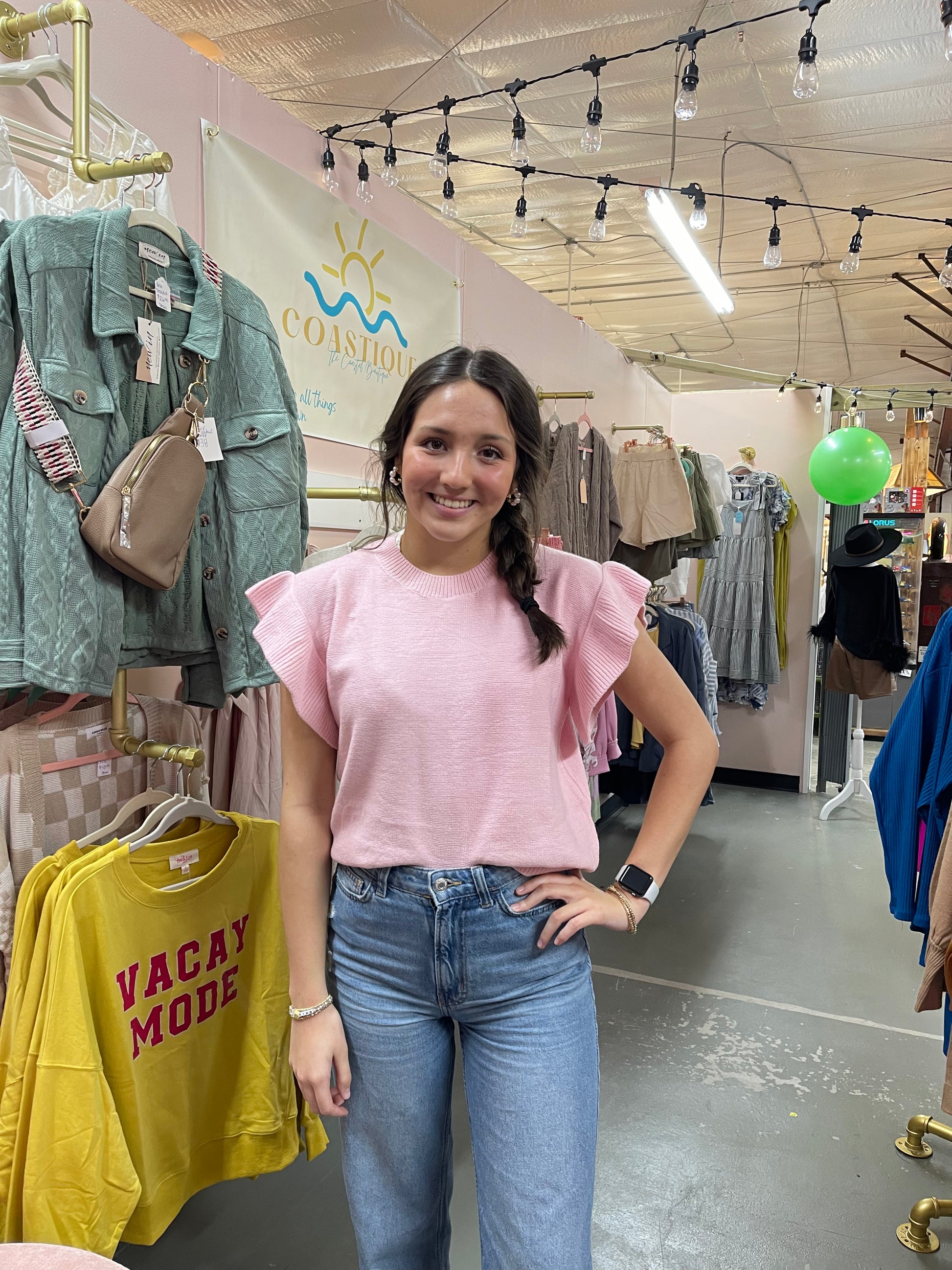 Sweater top with flutter sleeves