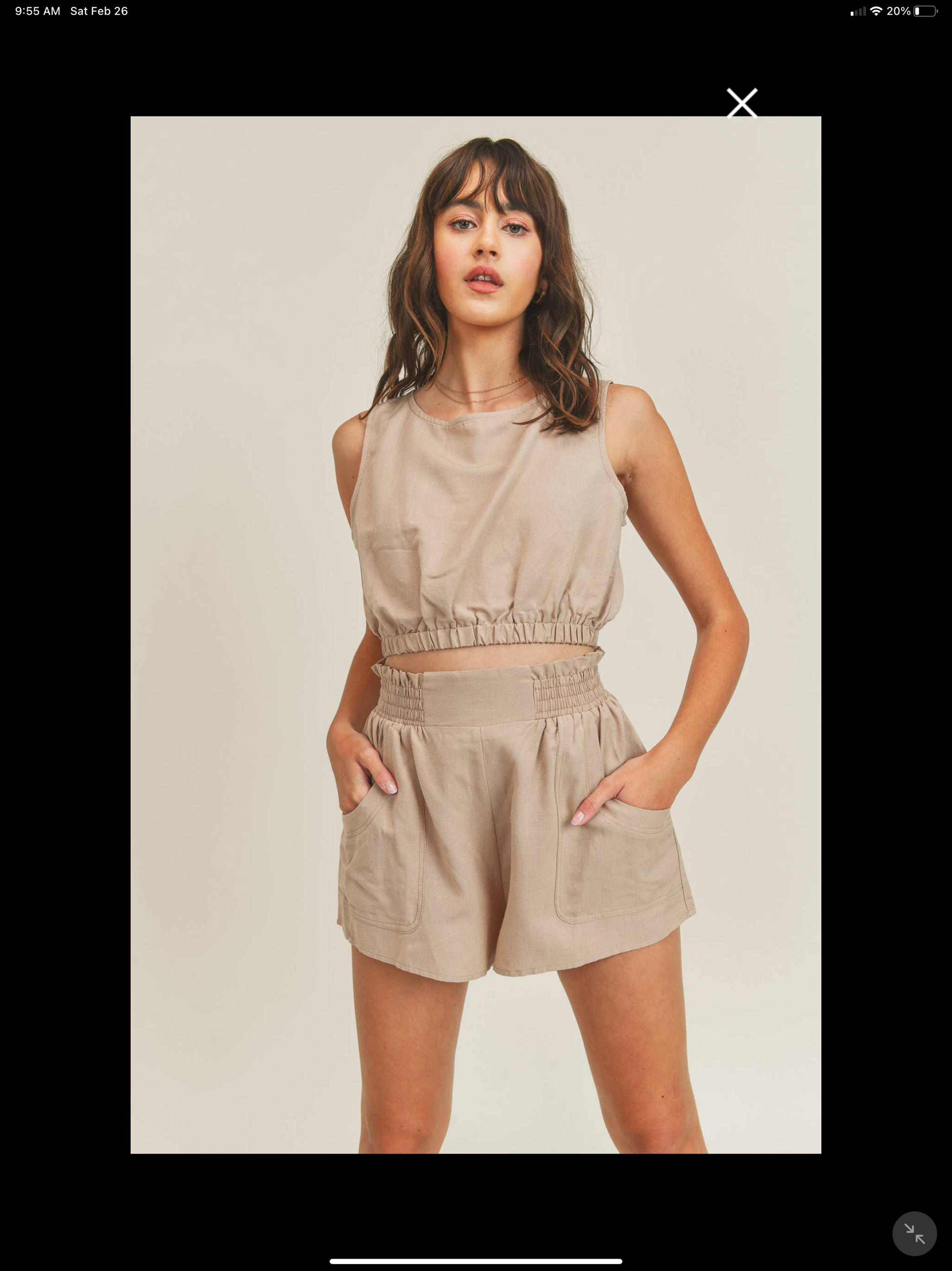 Linen set, sleeveless crop top, pocket shorts