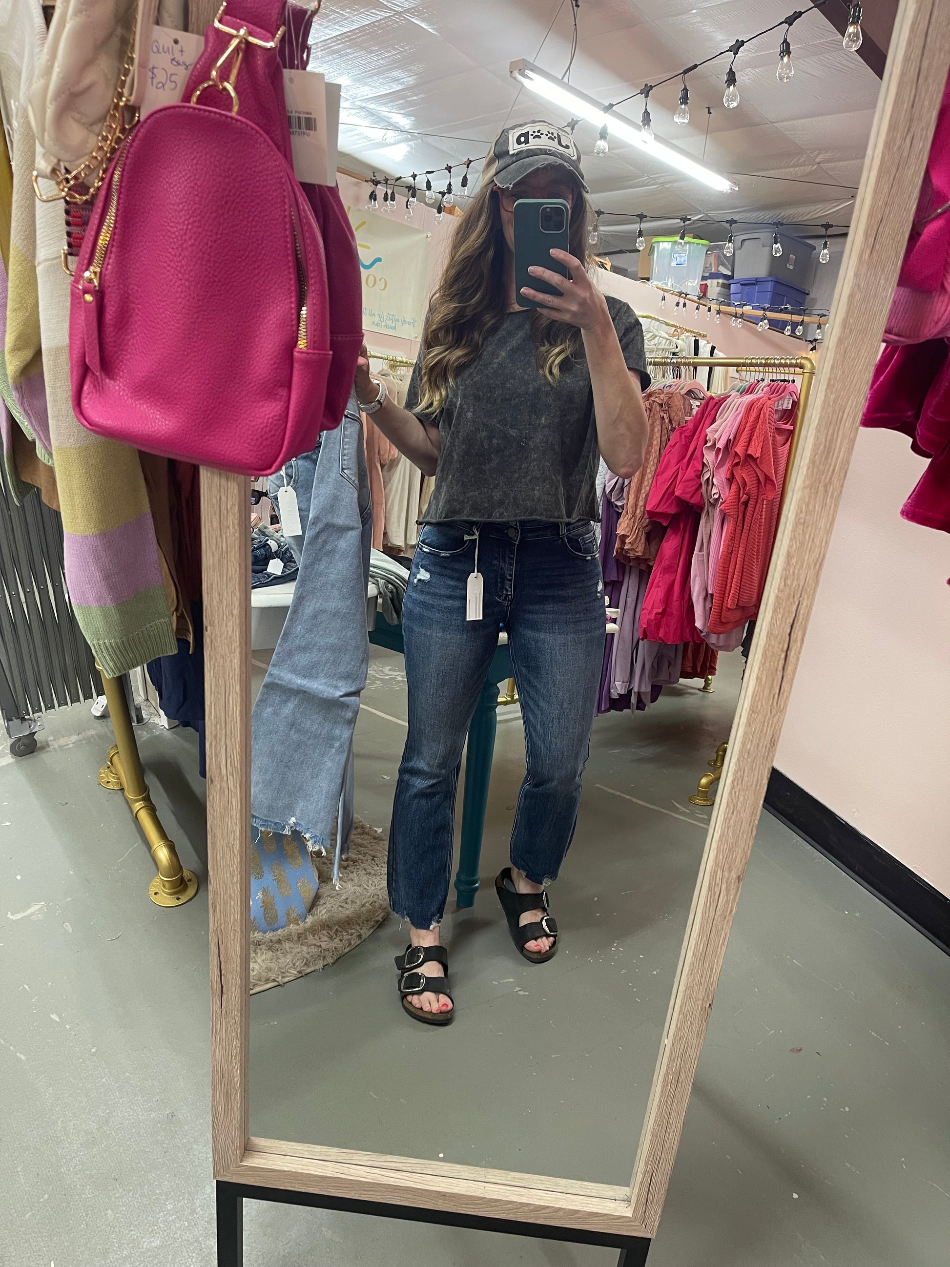 High rise crop bootcut with frayed hem