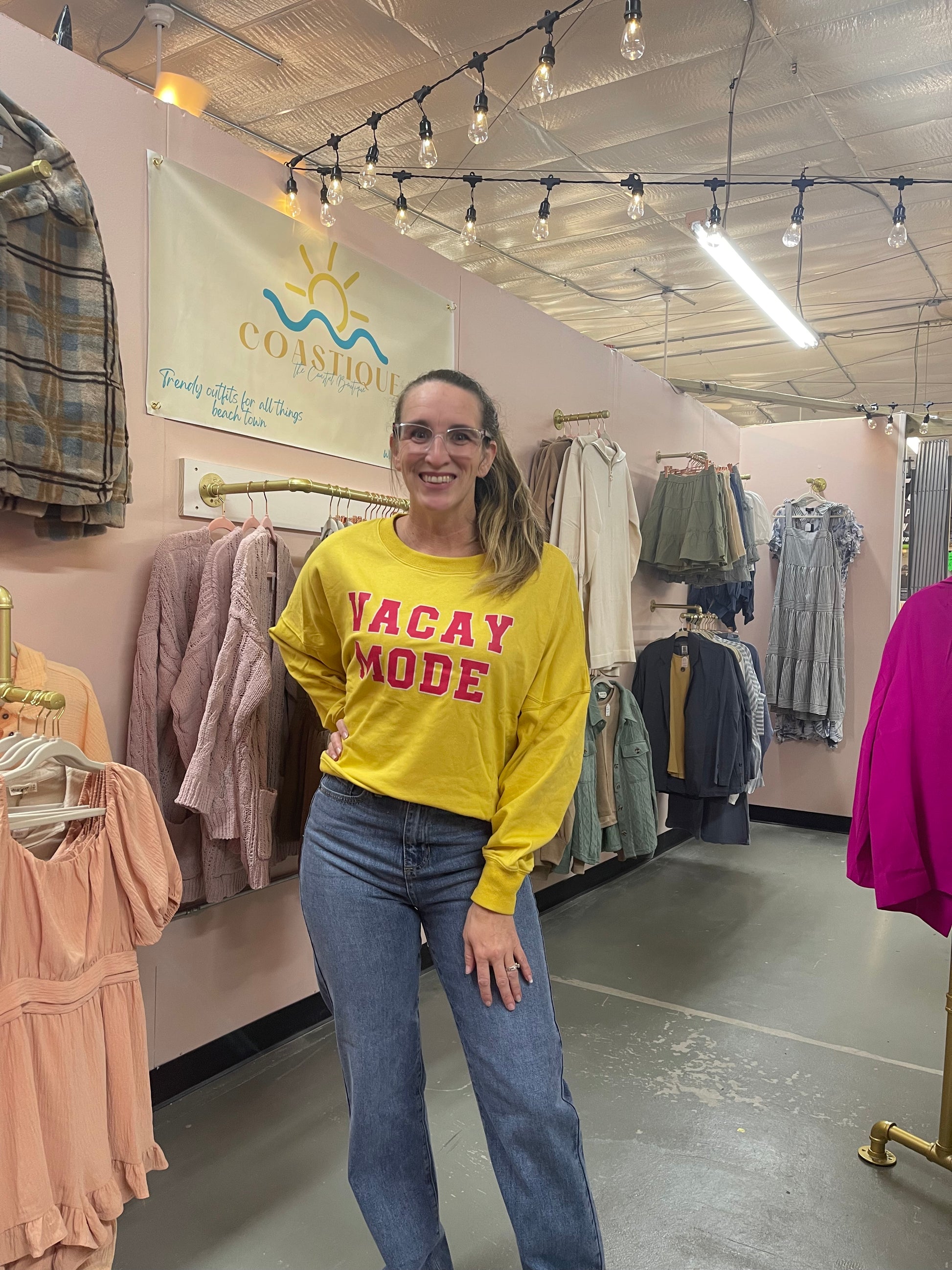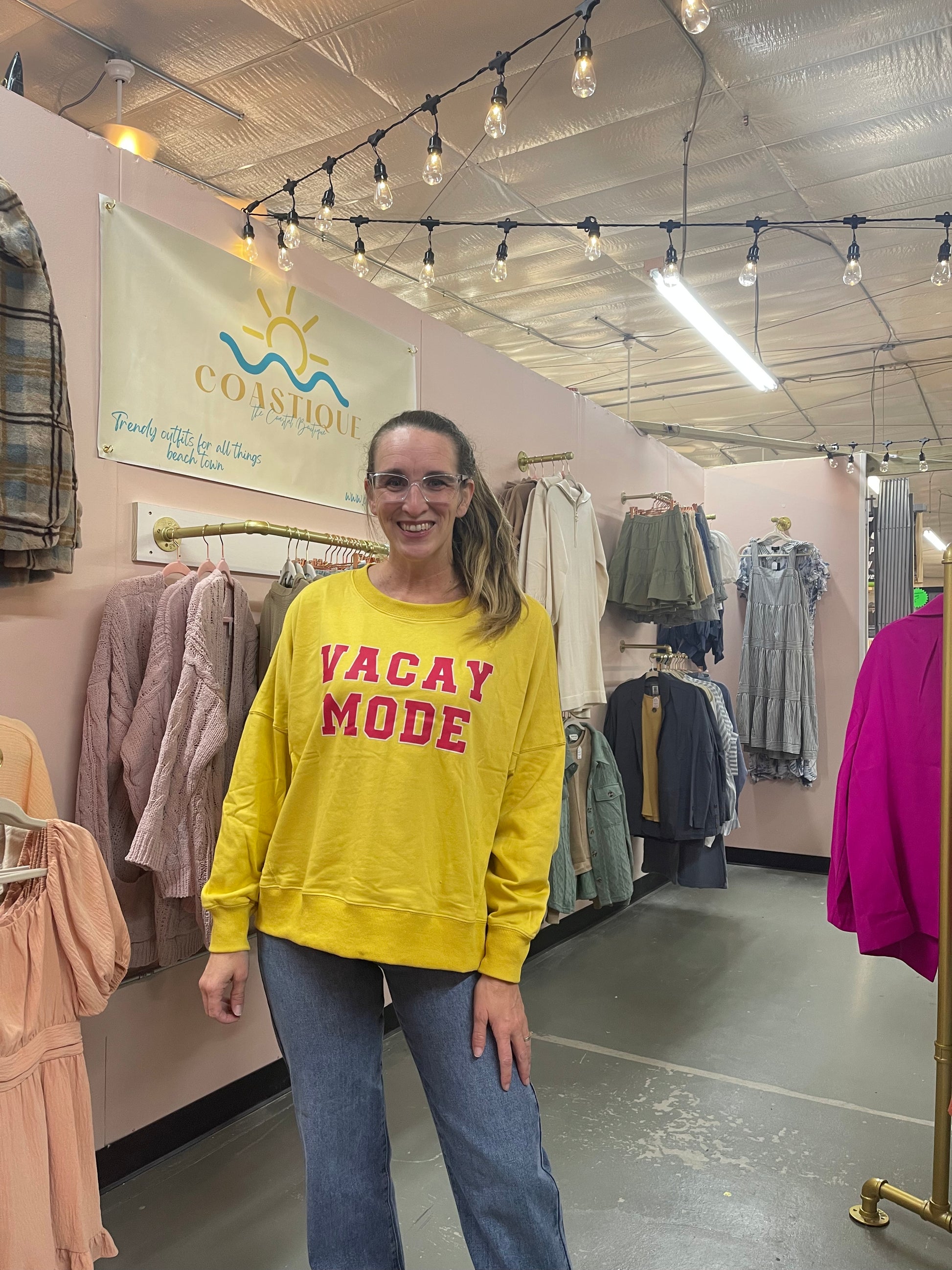 Vacay Mode Graphic Print Sweatshirt | MUSTARD
